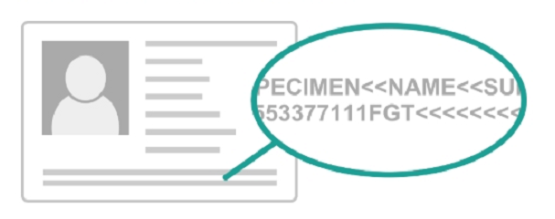 zona de lectura mecánica (MRZ) ↓ situada en la parte inferior de la página del pasaporte.